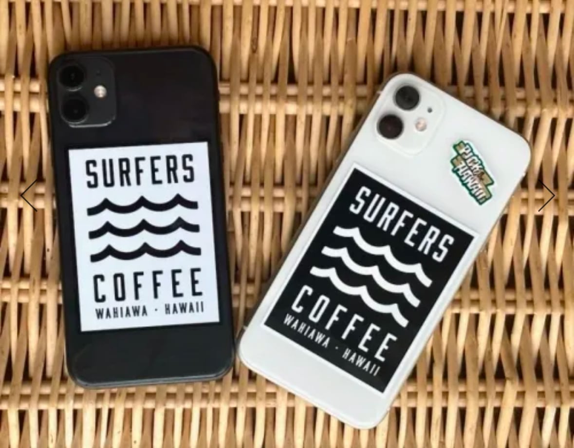 人気のサーファーズコーヒーよりイメージカラーのブラックとホワイトの2色のロゴステッカーが発売されました。